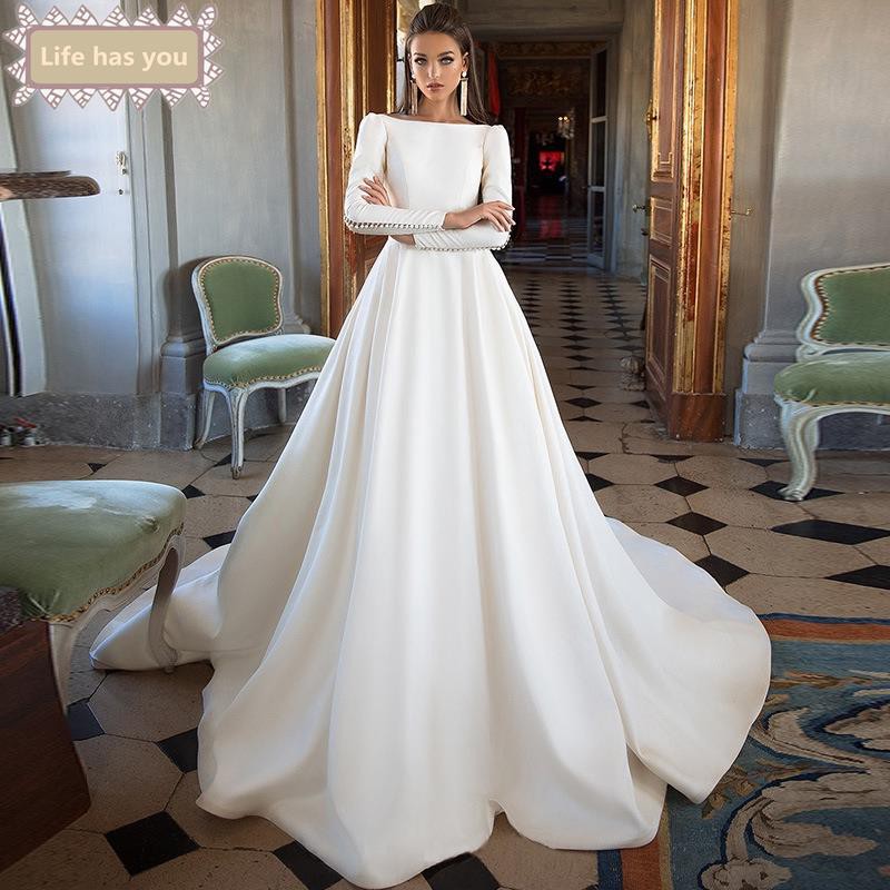 Elegant high neck wedding dresses bridal gowns long sleeve custom top lace 2020. 2020 popular 1 trends in weddings & events, women's clothing with simple satin backless long dress and 1. Satin long sleeve wedding dresses. Search by silhouette, price, neckline and more. Not into a million swarovski crystals on your wedding gown? Long sleeve satin wedding dresses. Satin simple off shoulder long sleeve hepburn style wedding formal dress skirt. Both wore traditional gowns with elegant lace sleeves. Free shipping on orders $129+. Related:boho wedding dress wedding dress size 12 simple wedding dress size 16 elegant wedding dress simple long sleeve a line wedding dress boho beach lace bridal gown custom size. Elegant lace mermaid bridal gown with train. At nasty gal, we love a long sleeve dress that's easy to throw on whatever the occasion! Home wedding & events wedding apparel wedding dresses.